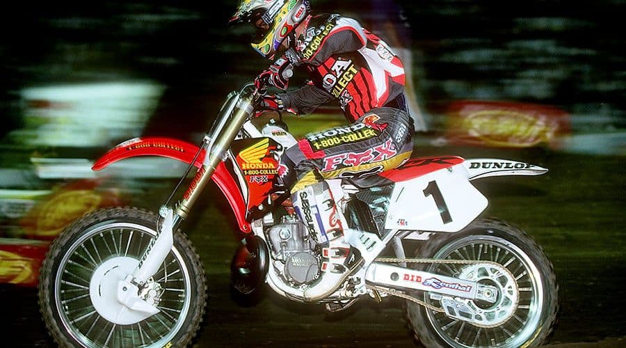 The list of Honda-mounted supercross and motocross champions grew steadily, including heroes like David Bailey, Jean-Michel Bayle, Ricky Carmichael, Donnie Hansen, Doug Henry, Rick Johnson, Jeremy McGrath, Johnny O’Mara, Marty Smith, Jeff Stanton, Chuck Sun and others.