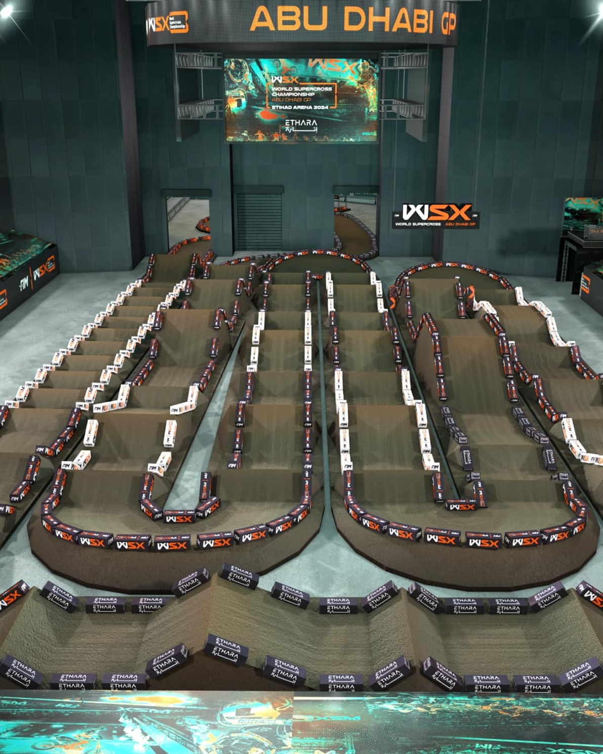 Check out what the riders will face at this weeks Abu Dhabi SXGP. A very interesting looking start as the riders enter the stadium. The FIM World Supercross Championship (WSX) returns to Abu Dhabi in 2024 in an adrenaline-fueled, heart-pumping, hair-raising evening of racing.