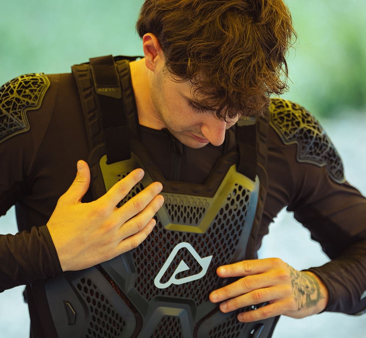 Acerbis presents the P035 RACE, a new body armour for motocross, enduro, and MTB with Level 2 certification for chest and back, designed to offer maximum safety with minimum weight. Advanced protection that can also be transformed into the P035, a new-generation full body armour created by combining it with the P035 protective jacket, for a complete structure and absolute freedom of movement..