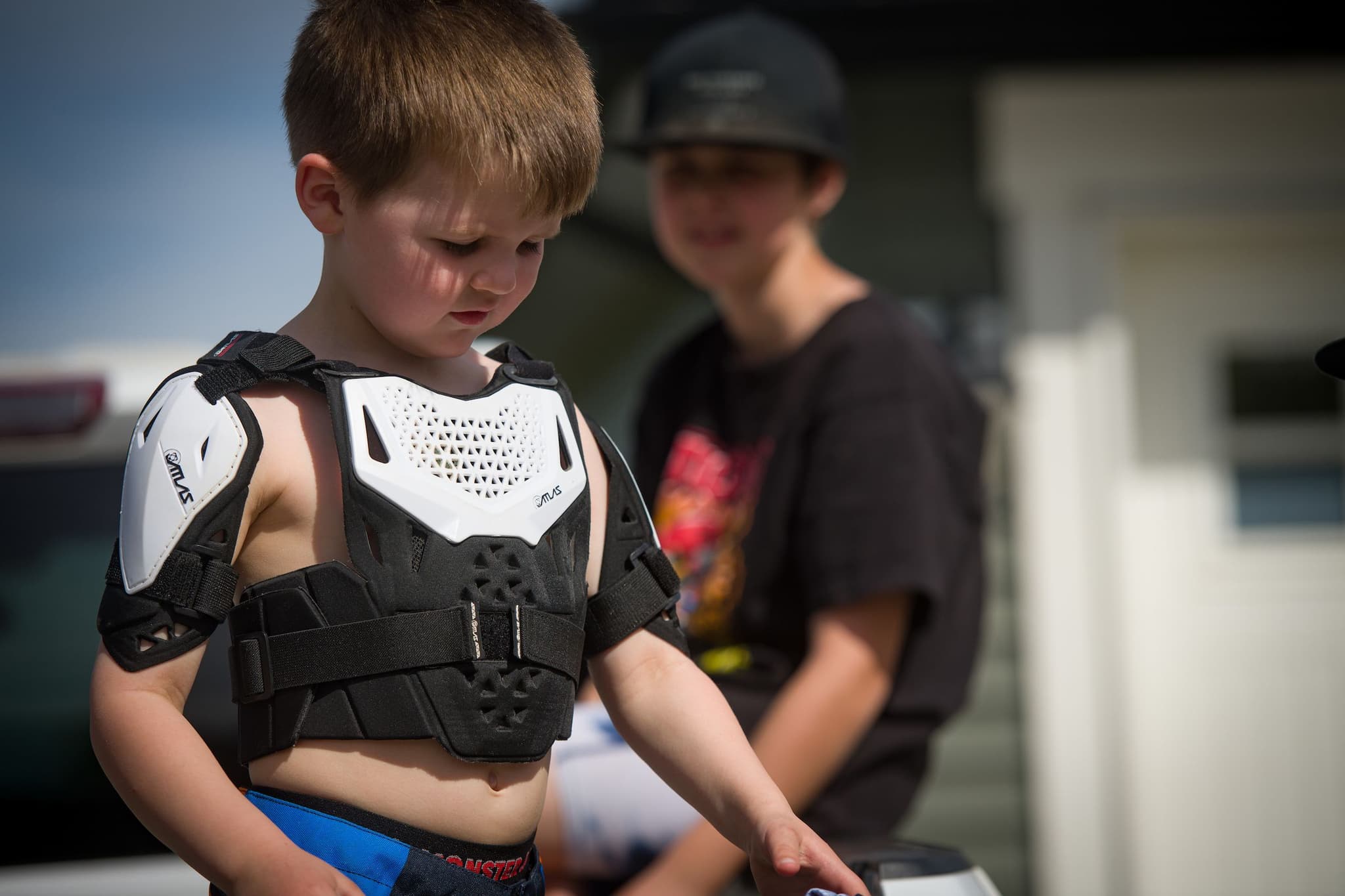 - Half length plastic chest for better mobility/fit for small kids