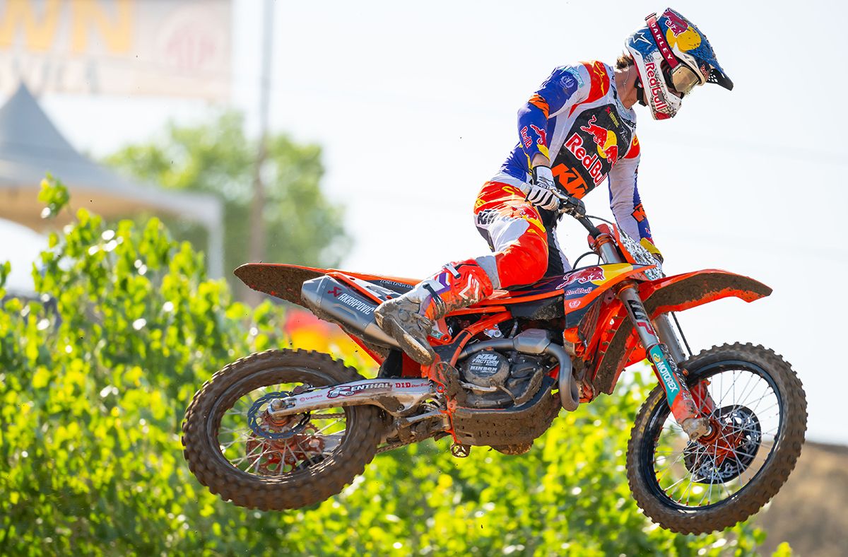 The AMA Motocross Championship returns to drop the gate for round 2 at the Hangtown Classic. The 450 premiere class is stacked with competition. Jett Lawrence enters round 2 with a 24 moto win streak, seemingly diminishing hope to a majority of his competition to claim that top spot on the podium. There is one rider however that has shown he is not willing to give up, and he showed everyone just that and more in Hangtown.