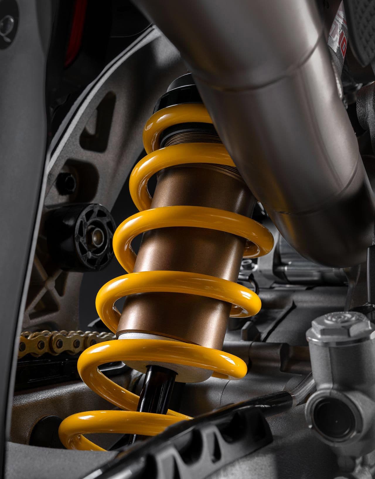 The Akrapovič exhaust reduces weight by approximately 1.7 kg and delivers a stronger torque curve between 4,000 and 7,500 rpm compared with the standard bike. Ducati says this improves acceleration while reducing rider fatigue over race distance.
