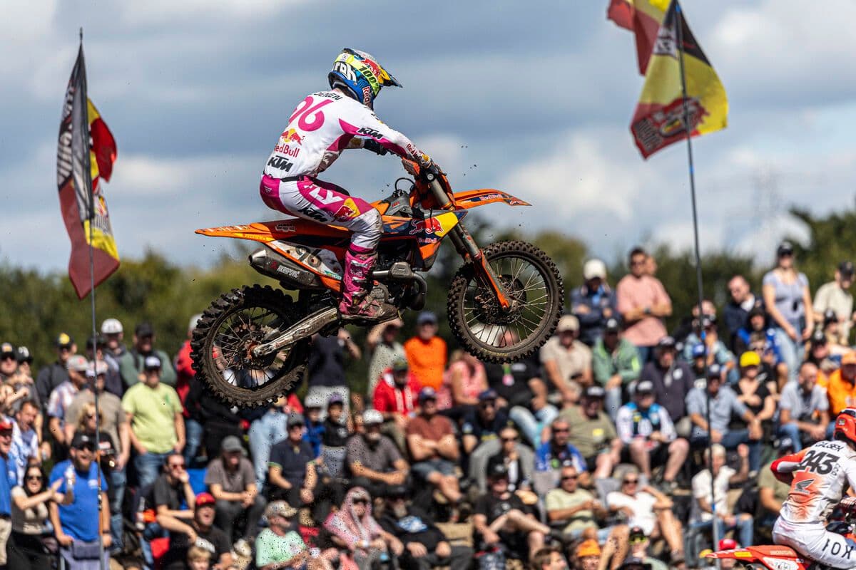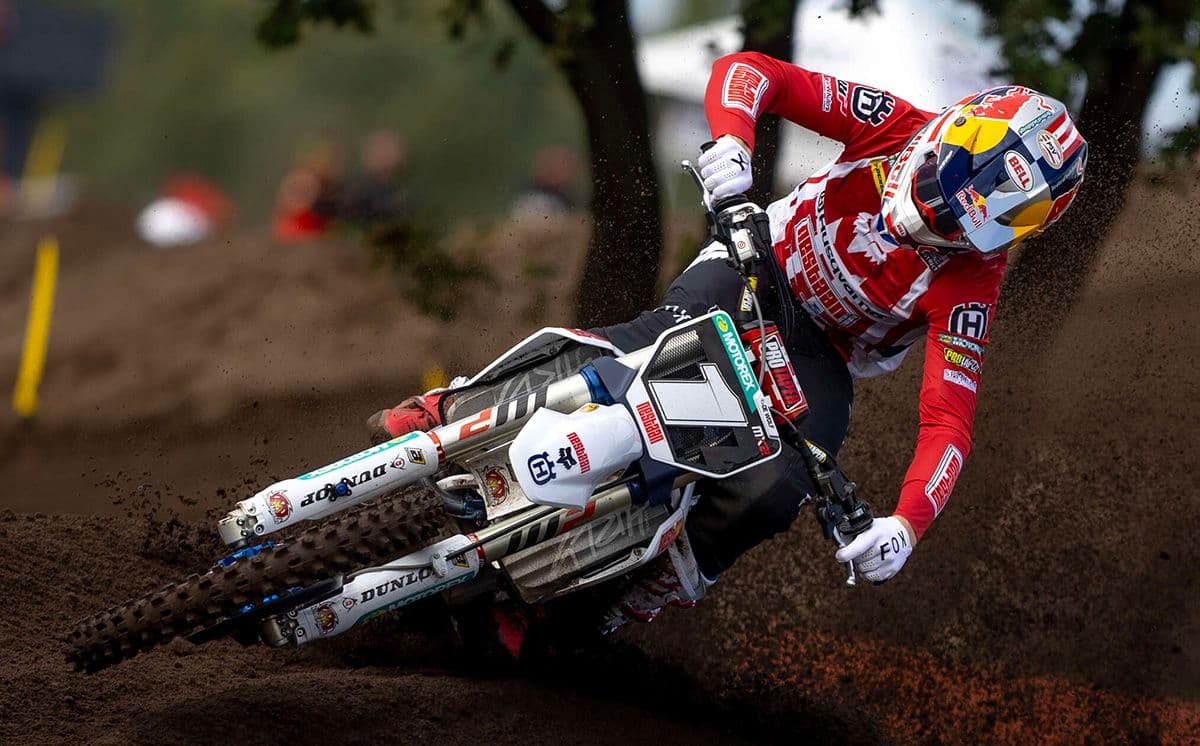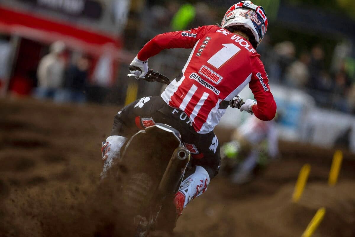 De Wolf storming to a flawless 1-1 on home sand; to close the MX2 title chase to within 15 points. Liam Everts backed up his teammate with gritty 4-6 finishes, securing fifth overall and strengthening Husqvarna’s manufacturers’ tally.