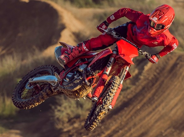 All-red bodywork – With large contact areas so riders can grip the bike better for ultimate control.