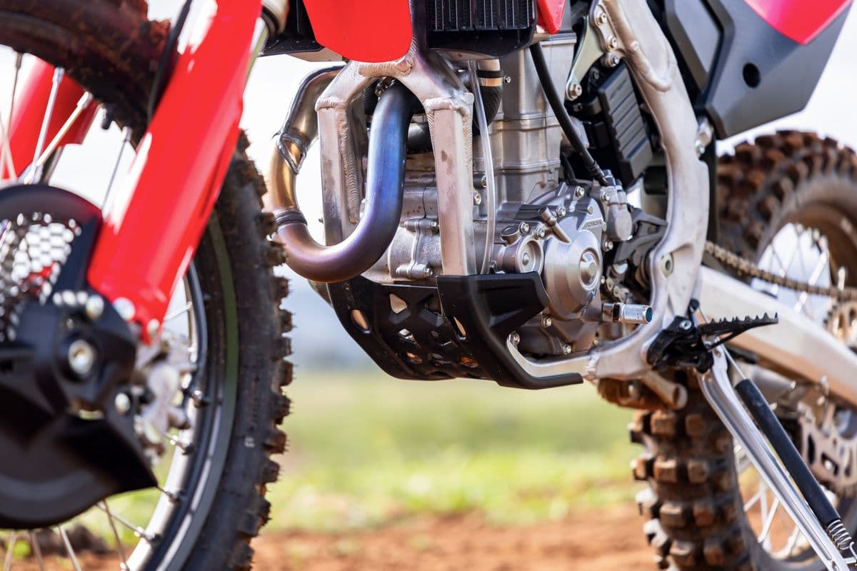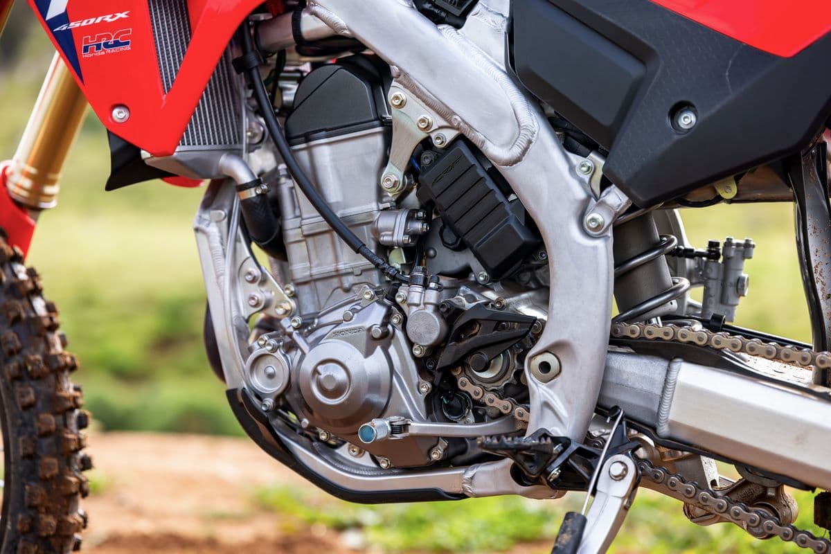 The CRF450RX is designed and developed to deliver just that, with motocross-inspired engine and chassis performance and off-road-focused features like dedicated ECU and suspension settings, an 18-inch rear wheel, an aluminum side stand, a large 2.1-gallon fuel tank and hand guards.
