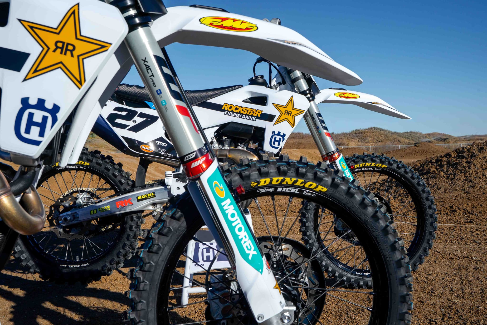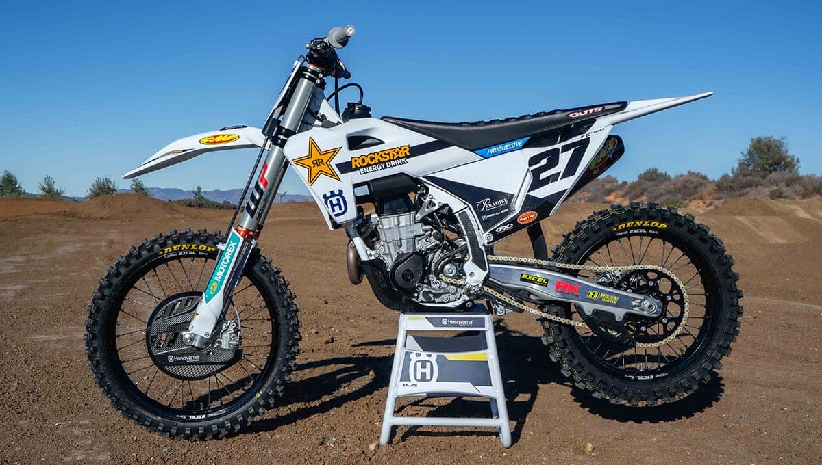 Glossy white frames and the latest Rockstar Energy Husqvarna Factory Racing graphics create a distinctive aesthetic. Each bike also includes racing essentials such as the WP Factory Start Device, GUTS Factory Racing seat cover, ProTaper handlebars, and soft ODI grips.