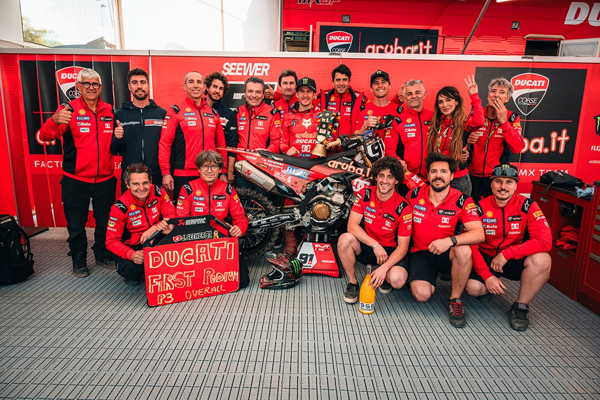 A historic day in Switzerland for Ducati Corse Off Road and the Aruba.it - Ducati Factory MX Team, as they celebrated their first-ever podium finish in the FIM Motocross MXGP World Championship. Swiss rider Jeremy Seewer, the 30-year-old from Bülach - just 30 kilometres from the Frauenfeld track - secured third place overall at the MXGP Grand Prix of Switzerland, the sixth round of the championship held across Saturday and Monday.
