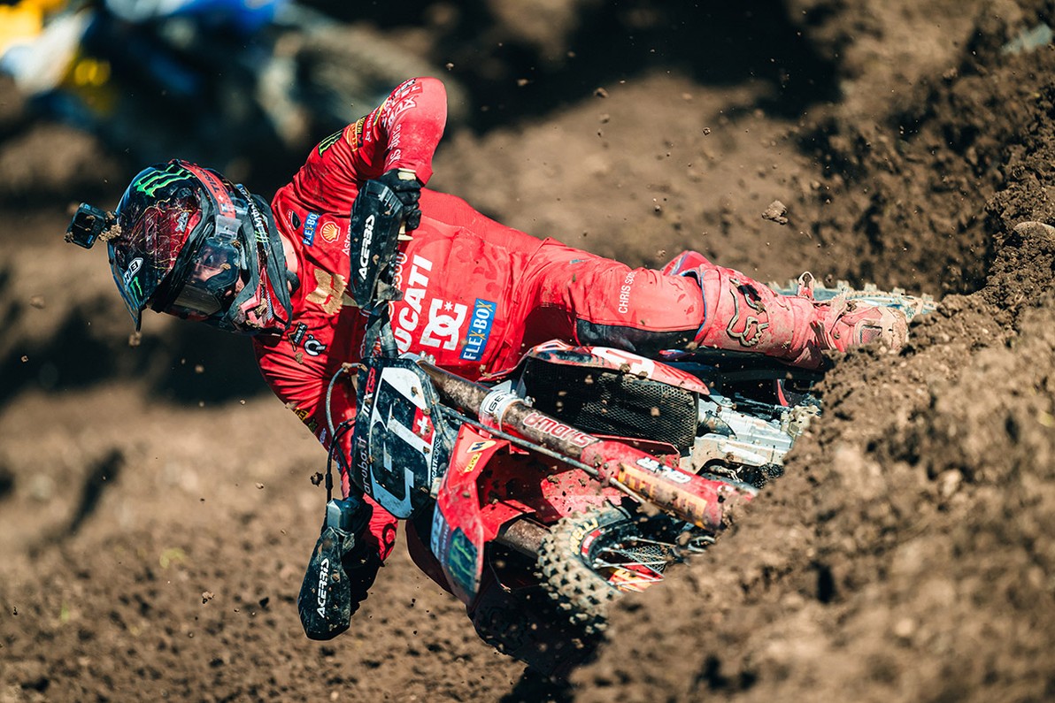 "It’s insane - Ducati’s first podium is huge! We worked so hard, starting from zero, and these guys have reached such a high level. It’s amazing! And to do it here at home, my first MXGP podium on Swiss soil, with all these fans and in this beautiful weather - I think it’s the best day of my life! The second moto didn’t start well for me. I got hit by a rock in the leg and lost all feeling for over a lap, so I dropped back, but then the race came to me. I’m so happy, and I want to thank everyone at Ducati!"