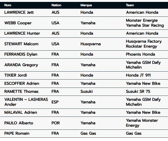 Webb with now a one second lead over Lawrence and the Aussie seemed to be making up grong. Ferrandis making small mistakes back in the field and Lawrence was all over the back wheel of Webb and looking for a way through. Hunter Lawrence also closing on the two front guys. Lawrence way quicker in these tough whoops.