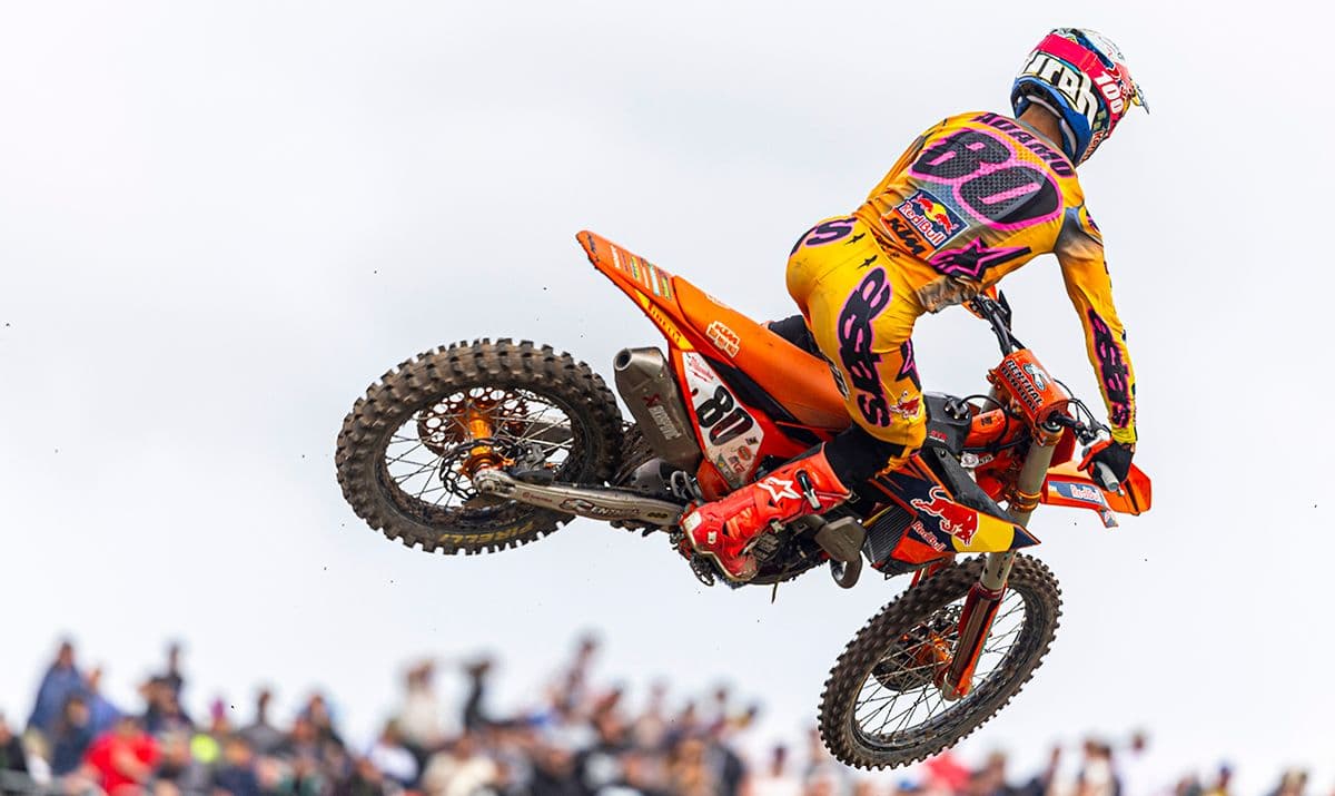 Simon Langenfelder is the current king of the MX2 class, as the German on the factory KTM machine is just looking too fast and too smart for his rivals. The German went 1-2 for the GP win in Loket and his rivals stuttered enough to hand the red plate man an even bigger gap in the championship points. Second overall was Andrea Adamo with 5-1 and third was Valin with 3-3.