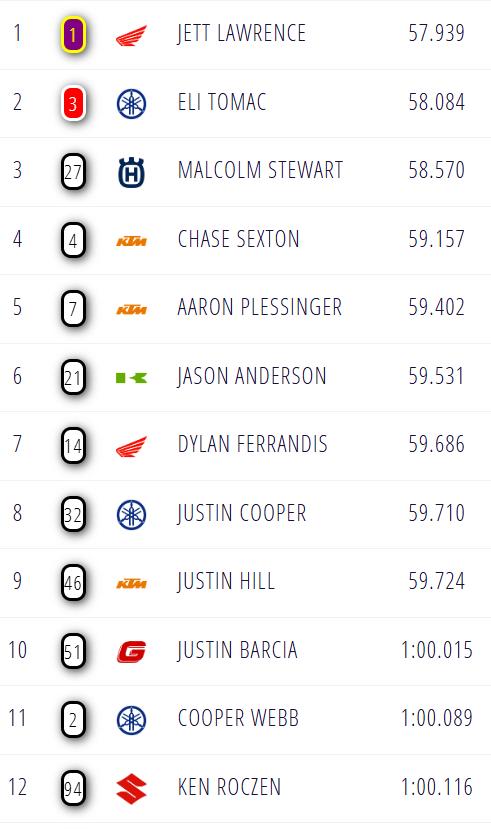 Jett Lawrence remained the quickest of the 450 riders, but it was Haiden Deegan who came out swinging in the 250 qualification. The Aussie and American will do their best to take it to the opposition tonight. Not much in it between Lawrence and second quickest man, Eli Tomac, so expect fireworks later tonight.