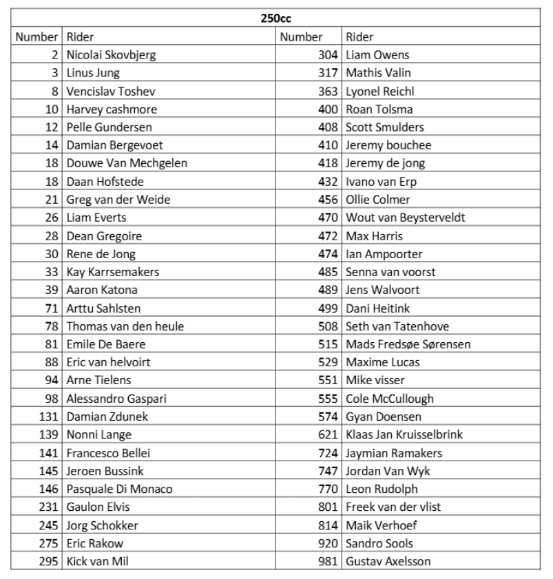 As we see a lot in European races of late, just 21 450 riders on the grid. Times are tough in Europe at the moment, when it comes to motocross races. Also the schedule below.