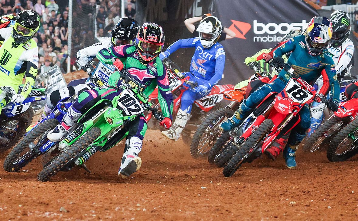 In both SX1 finals he rocketed out of the gate and snatched the holeshot, instantly throwing himself into the spotlight while the Lawrence brothers loomed behind him.