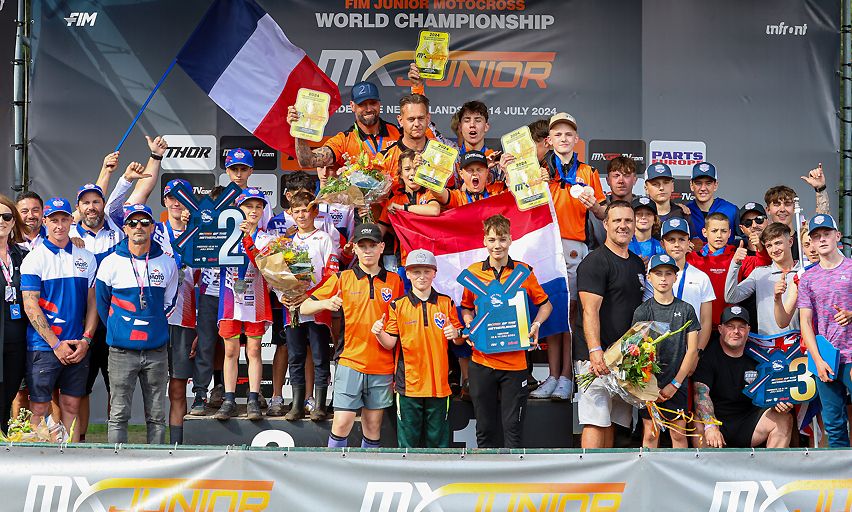 The 2024 FIM Junior Motocross World Champions and World Cup Winner have been crowned today at the conclusion of racing on the Circuit Kamperweg Heerde in the heart of the Netherlands, with Champions from a far afield as Hungary and New Zealand, but the home crowd also had one of their own claim a winner’s trophy on the podium!