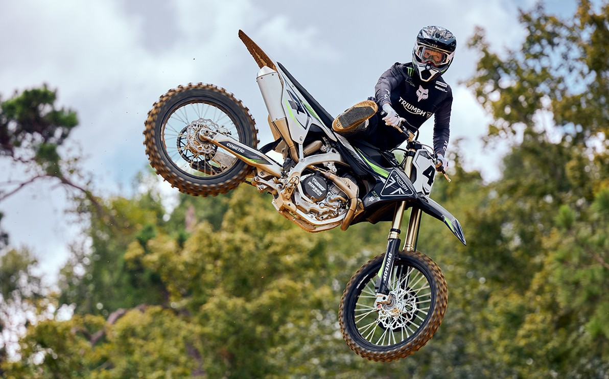 This bike features Triumph’s first 450cc competition engine. How does it feel on a motocross track?