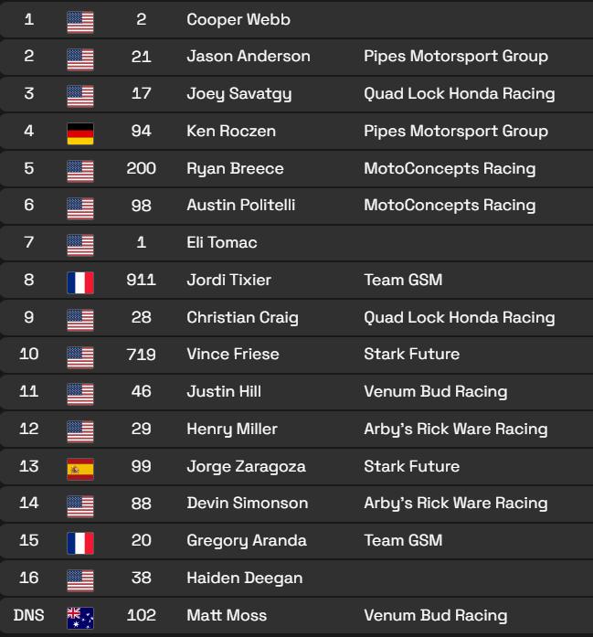 Christian Craig: It means a lot for sure. I can give you a lot of stories as to why I shouldn't be racing here, but I just beat some legends and I know Haiden a long time. I had a tough second moto, but rebounded in that last one. The whole team has been great and they believe in me and I was in some crappy situations, but these people want me in their team. People I thought were close to me, this one is for you.