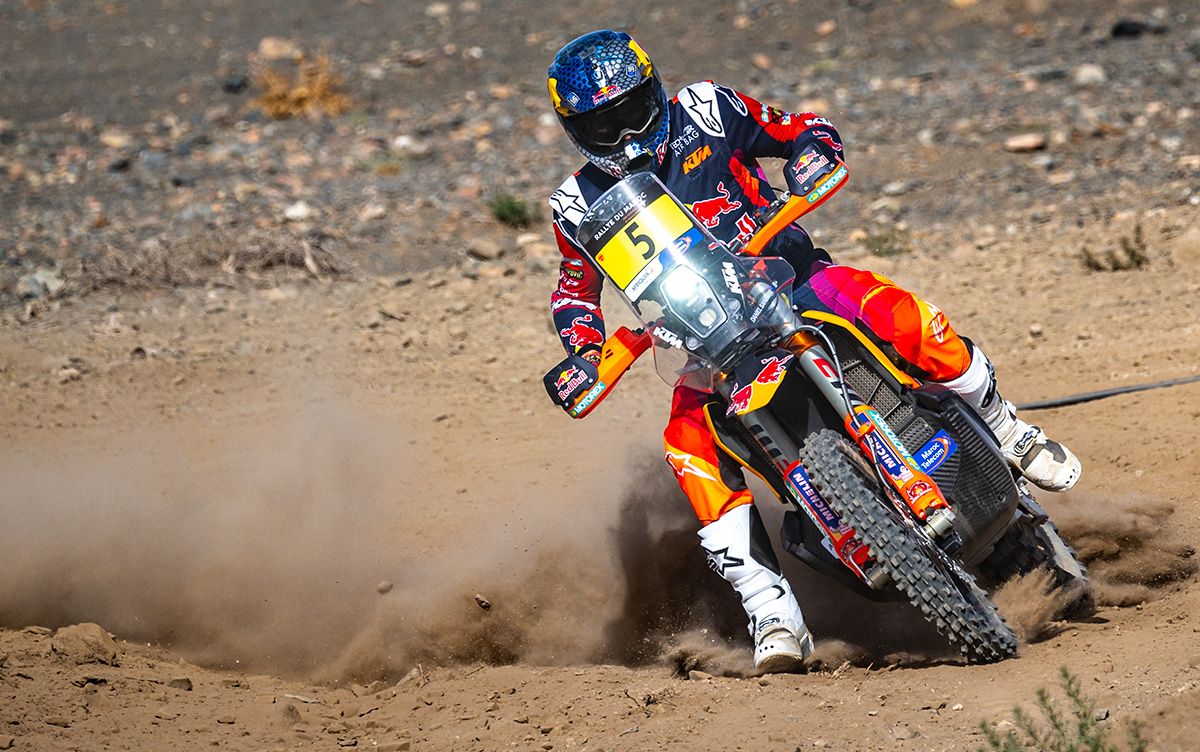 Red Bull KTM Factory Racing's Daniel Sanders has claimed victory on stage three of the 2024 Rallye du Maroc. Demonstrating exceptional skill in the dunes of today’s timed special, the KTM 450 RALLY rider has taken the provisional rally lead with an advantage of one minute and 35 seconds after three full days and more than nine hours of intense competition. Meanwhile, Luciano Benavides delivered a solid ride to secure the fifth-fastest time on the 327-kilometer special stage.