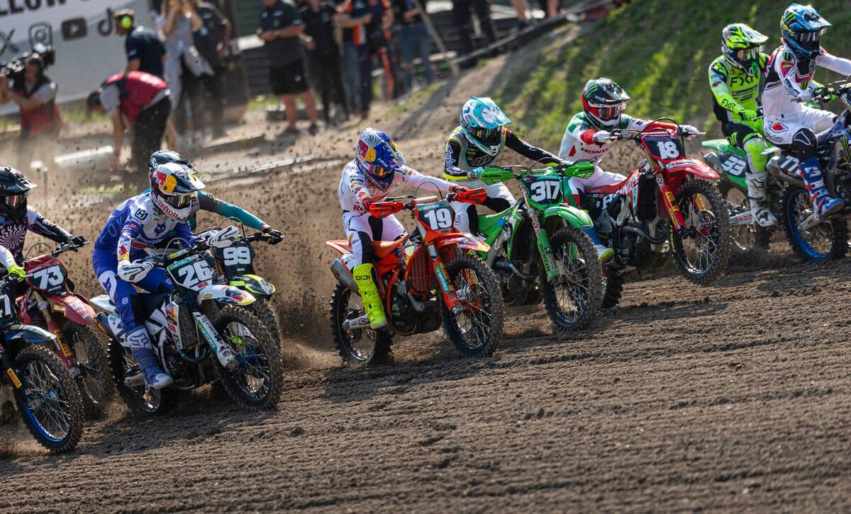 Coenen again the holeshot in the second MX2 moto, with Grau second, then Mikula, Langenfelder, Janis Reisulis, Karlis Reisulis, Zanchi, Farres and Lata. Everts was top five, but crashed out and back near last.