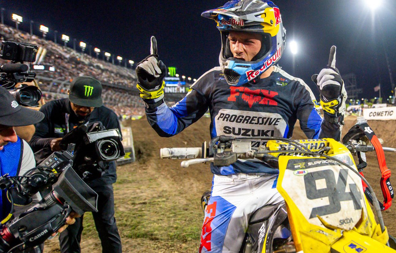 KEN ROCZEN: Secured first career Daytona Beach victory in 12th attempt (11 450SX, 1 250SX) to remain in Championship contention. It was his 51st SMX League victory (12th all-time) and 23rd 450SX Class victory (11th all-time). Suzuki now has five Premier Class wins in Daytona and their first since Chad Reed in 2009. Roczen’s 75th 450SX Class podium ties him with Kevin Windham and James Stewart for seventh all-time.