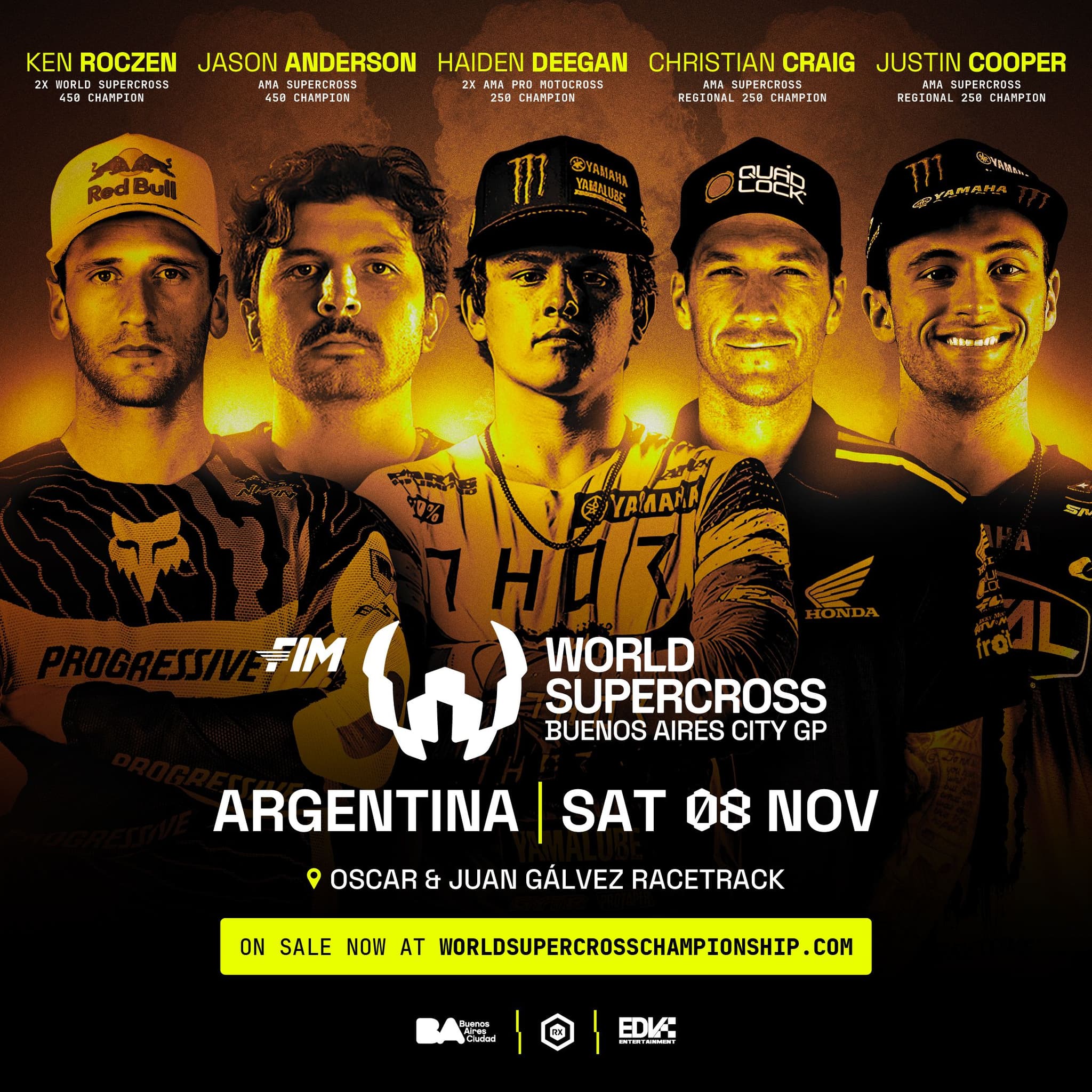 Josi Zen, Director at EDV Entertainment, said: "Argentina is passionate about world-class sport, and welcoming the World Supercross Championship here for the very first time is a huge moment for our fans. Hosting the only Latin American stop on the calendar puts Buenos Aires on the global stage, and we’re excited to deliver an unforgettable night of racing and entertainment."